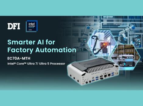 DFI, Taipei, Taiwan, 18.12.2025 - DFI’s EC70A-MTH is an ultra-compact, fanless system designed to serve as the operational core of your machine vision and factory automation projects. Powered by Intel® Core™ Ultra processors with an integrated NPU, it supports up to 32GB of LPDDR5 memory, delivering up to 11 TOPS (CPU+NPG+GPU up to 22 TOPS) of Edge AI computing power and excellent energy efficiency. The system offers versatile expansion, supporting AI accelerators like Hailo and MemryX, multiple COM ports, and 5G/Wi-Fi modules. Backed by DFI’s high-quality hardware design expertise, the EC70A-MTH is now driving automated defect inspection on high-speed production lines and serving as the precise brain for AMRs in logistics centers. Certified for shock, vibration, and wide temperature operation (-20°C to 60°C), it ensures reliable, long-term operation in your mission-critical environments.