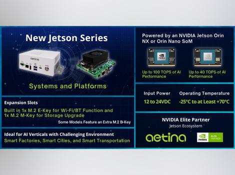 Aetina, Taiwan, 05.01.2023 - Aetina, a leading provider of state-of-the-art edge AI solutions, has launched its new NVIDIA® Jetson™-based series of embedded systems and platforms, powered by NVIDIA Jetson Orin NX and Orin Nano™ system-on-modules (SoMs) during the Consumer Electronics Show (CES). These new Aetina DeviceEdge systems and platforms are a set of embedded computers designed for use in AI and IoT, ideal for running AI inference tasks in different verticals.