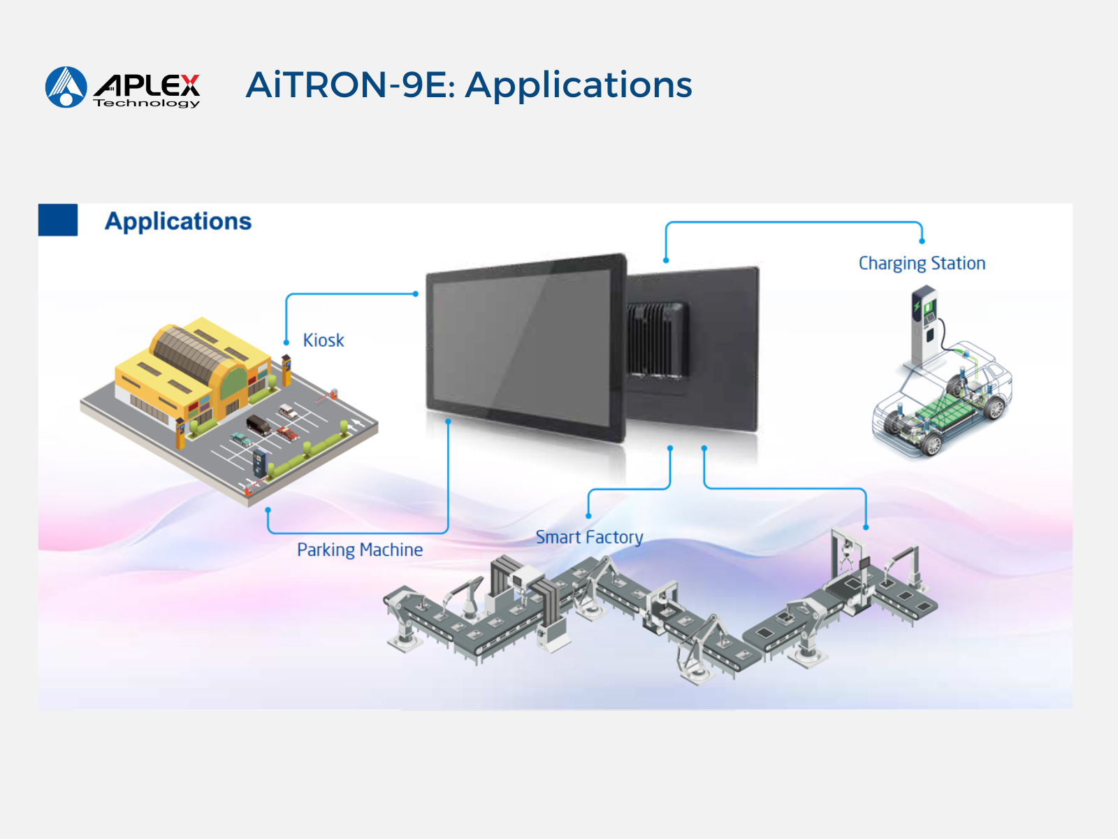 AiTRON-9E supports both panel mount and VESA mount installations, the AiTRON-9E is engineered for easy deployment. Its rugged yet versatile design allows smooth integration into industrial control systems, EV charging stations, kiosks, and other self-service solutions.The AiTRON-9E redefines industrial HMI by merging AI computing, rugged design, and versatile deployment. Whether powering smart factories or enabling outdoor EV charging solutions, it delivers the intelligence, performance, and reliability for critical operations in both industrial and semi-outdoor environments.
